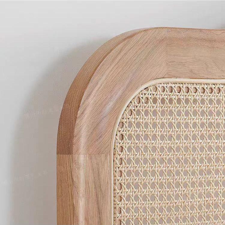Al centro dell'appello di questo letto si trova la sua scelta di materiali premium. Opta per la robusta ed elegante quercia rossa, la leggera e versatile quercia bianca nordamericana o la cenere bianca calda e invitante. Ogni tipo di legno porta il suo grano e la sua consistenza unici, aggiungendo un tocco della bellezza della natura alla tua camera da letto. La testiera intrecciata, realizzata dalla rattan Manau indonesiana, aggiunge uno strato di consistenza e profondità, migliorando il fascino rustico del letto.